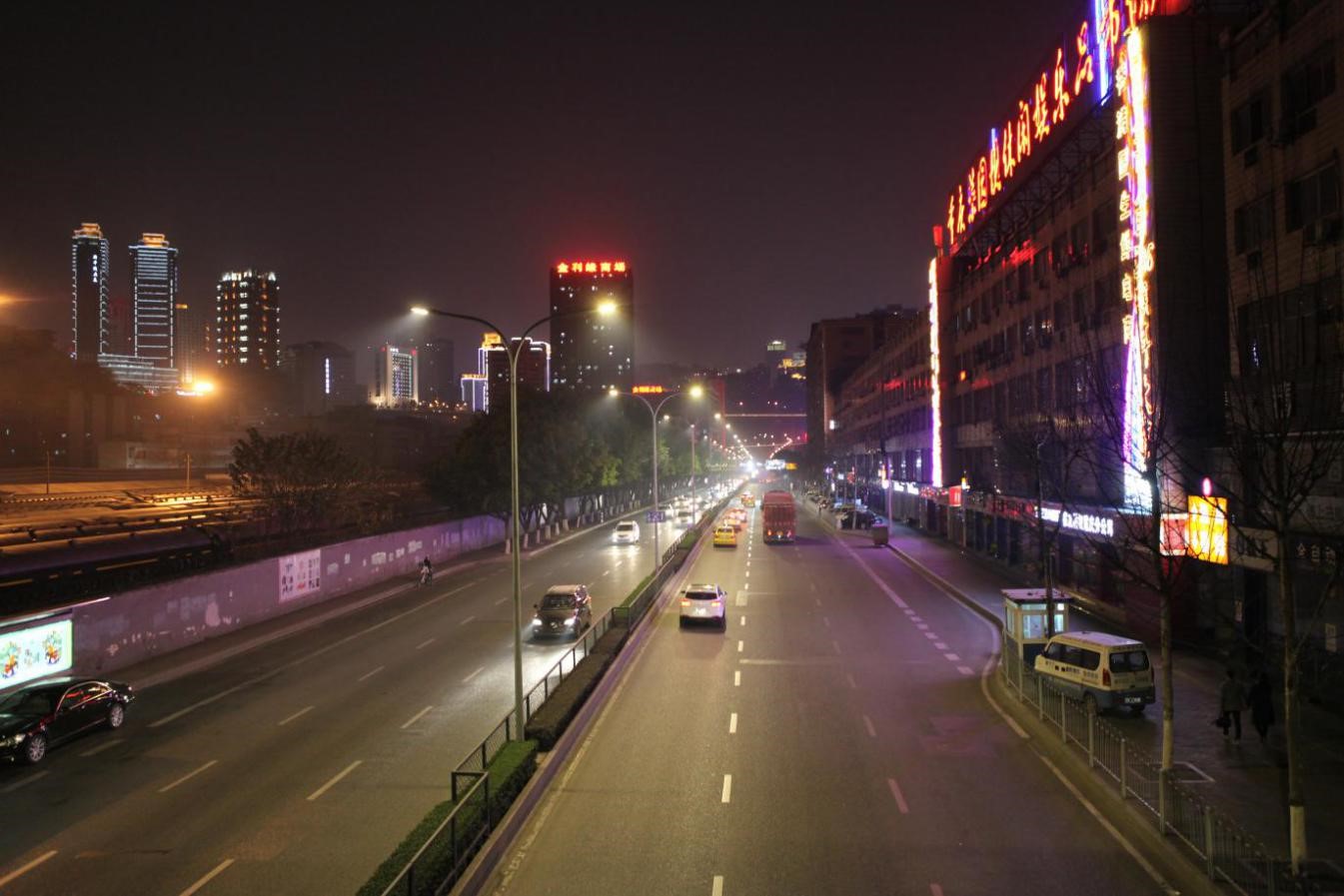 重慶市渝中區菜袁路實(shí)施的物聯(lián)網(wǎng)多色溫防霧霾LED人工智能路燈